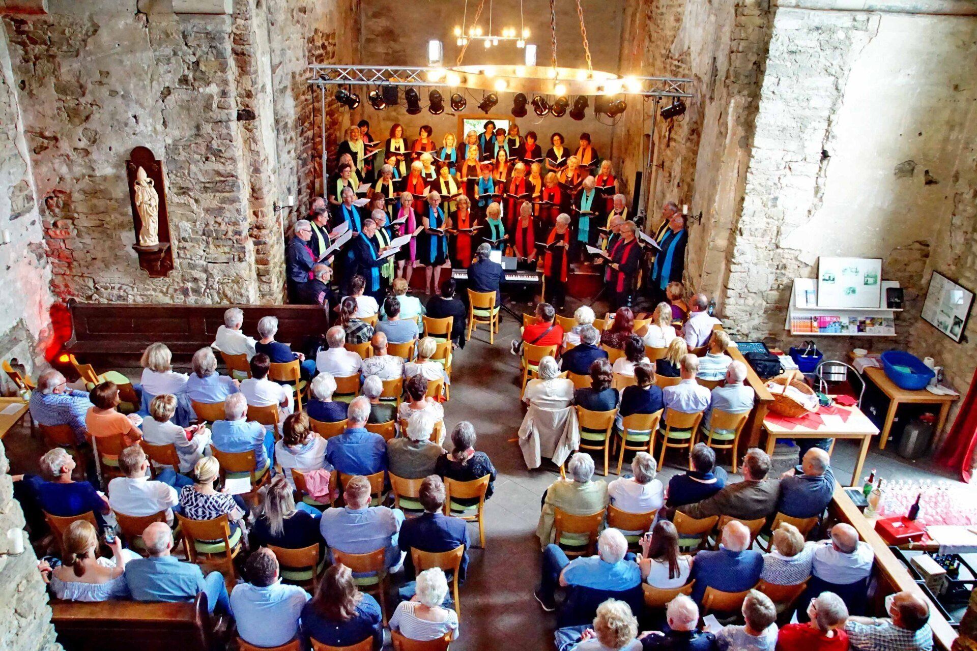 Ohne Qualitätsverlust ist der gemischte Chor Grenzenlos der Chorgemeinschaft Niederzissen bisher durch die Pandemie gekommen. Den Beweis dafür lieferten Chorleiter Andreas Norren und sein Ensemble bei einem Doppelkonzert an zwei aufeinanderfolgenden Tagen im historischen Gemäuer der ehemaligen Propstei Buchholz. Zwei nahezu restlos ausverkaufte Veranstaltungen und der begeisterte Applaus der Konzertbesucher waren für die Sängerinnen und Sänger der Lohn für Probenarbeit auch unter schwierigsten Bedingungen während der Corona-Hochphasen. Per Online-Proben hielt Andreas Norren seinen Chor in dieser Zeit zusammen. Und wenn es die Infektionszahlen wenigstens zeitweise erlaubten, rundeten ausgedehnte Übungsnachmittage oder sogar Probenwochenenden wie erst vor wenigen Wochen in der Jugendherberge Manderscheid den Übungsbetrieb ab. Vom Ertrag der Bemühungen konnten sich die Besucher an beiden Konzerttagen überzeugen. Auf dem Programm, das von Chormitglied Herbert Holland flott moderiert wurde, standen Stücke von Udo Jürgens, Ed Sheeran, Nena, Joan Baez oder auch populäre Musical-Melodien. Aber auch Lieder mit (trauriger) Aktualität: „Nein, meine Söhne geb´ ich nicht“, jenes aufrüttelnde Antikriegslied von Reinhard Mey, oder „Durch die schweren Zeiten“ von Udo Lindenberg. Wie wohltuend optimistisch fühlten sich da „You raise me up“ (Du richtest mich auf) vom großartigen Josh Groban oder der Ruf nach „Freiheit“ von Marius Müller-Westernhagen an. Mit seiner beeindruckenden Bassstimme entführte Rainer Schönhofen die Zuhörer mit „Oh happy day“ in die Welt der Gospelmusik. Gemeinsam mit dem Publikum sang das Grenzenlos-Ensemble „Mich trägt mein Traum“ von ABBA. Dafür lag auf jedem Stuhl ein Textblatt. Eine Idee, die hervorragend ankam. Gäste auf der Propstei-Bühne waren auch Laura Schwarz aus Niederdürenbach und Marco Wrobel aus Oberzissen, die schon seit 2014 als Duo „Pure Water“ sehr erfolgreich musikalisch unterwegs sind. Die Verbindung zu Grenzenlos ist denkbar einfach zu erklären: Marco Wrobel, der auf seinem „Heuboden“ in Oberzissen seit Jahren regelmäßig Kleinkonzerte veranstaltet, ist auch Chormitglied. Eine besondere Überraschung bereiteten die Akteure am zweiten Konzerttag VG-Bürgermeister Johannes Bell, der am Tag zuvor einen halbrunden Geburtstag gefeiert hatte. Ihm widmete die Sängerschar das Stück „Das ist dein Tag“ von Udo Jürgens. Der Verwaltungschef bedankte sich für das nicht alltägliche Geburtstagsgeschenk bei allen Beteiligten mit Präsenten in flüssiger Form. In ihren Schlussworten bedankte sich Nicole Schönhofen, Präsidiumsmitglied in der Chorgemeinschaft, beim Förderverein der Propstei sowie bei der Verbandsgemeinde für die Unterstützung bei der Durchführung der Veranstaltungen. „Das Wochenende war bombastisch. Die Leute waren begeistert, aber natürlich auch froh, endlich noch einmal ein Konzert besuchen zu können.“, fasste sie nach Abschluss des zweiten Konzerttages ihre Eindrücke zusammen.